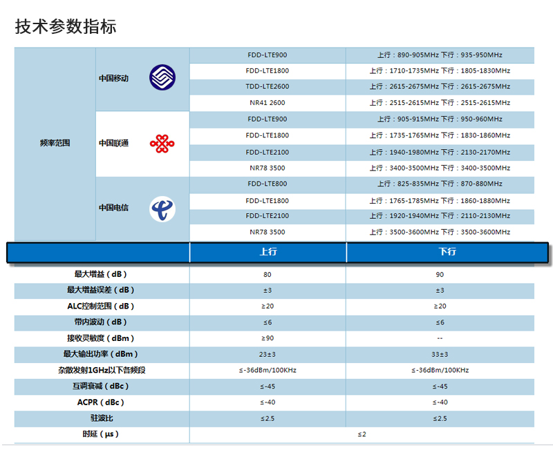其中2100M為1920-1980/2110-2170MHz全頻段60MHz帶寬