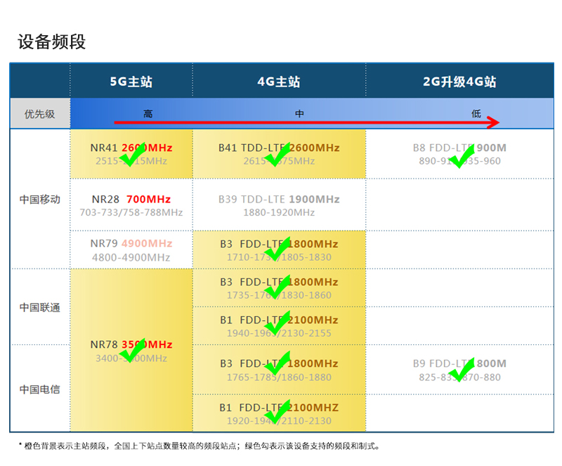 其中2600M為2515-2675MHz全頻160MHz帶寬,包含中國移動的5G的NR100MHz和4G的LTE60MHz