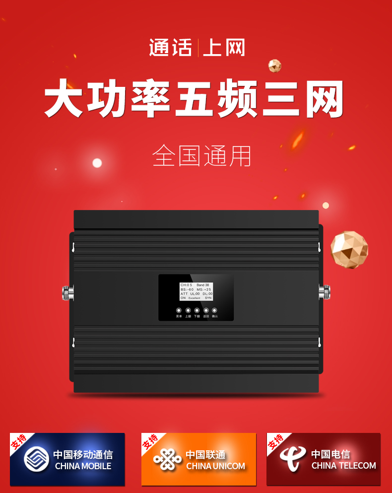 AT001大功率五頻三網(wǎng)4G 移動聯(lián)通電信三網(wǎng)234G 80dB增益 27dBm功率